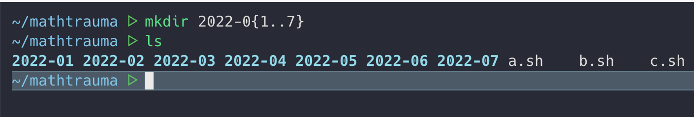 {1,2,3,4,5,6,7} 대신 {1..7} 을 사용할 수 있네요.